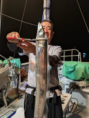 例年の記録を見ると遅くまでやって20日前後の連休まで、去年は9月の最初の週末で終わったみたいです。もしそれでも挑戦してくれるお客さんがいたら周りの様子と海色を見つつ決めたいと思います。様子を見ながらって感じですかね?去年も10月に出た時は夕方便でしたが、それもありだけど夜中便で朝までっていう手もありそうです。夜中便の方が船が少なそうな感じもします。あとは挑戦してくれるお客さんの都合次第です。それもこれも海が済んで暗い時に食うようになってからのお話しと言うことで。皆さんの挑戦をお待ちしています。